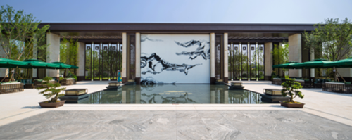 薊州區古稱漁陽,“漁陽八景”乃京東名勝,富于詩情畫意。鴻坤·山語墅,取“漁陽八景”之精髓,借山水之勢,凝練園內藝術山水之境,成就融合薊州山水大境與鴻坤·山語墅特色于一體的山水文化院落,山水之美,人文精粹萃于一園,閃耀薊州。鏡水庭波光粼粼,倒影入畫;后園雨幕朦朧,有煙雨江南之境;竹林搖曳生風,枝葉關情。水、竹、山、墅構成一幅絕妙的山水風情畫,輝映薊州。