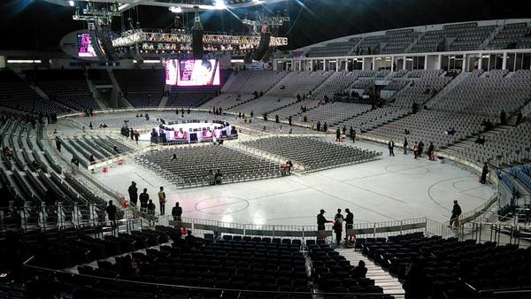 佛山國(guó)際體育文化演藝館位于佛山新城的核心區(qū)域,總建筑面積為15.5萬(wàn)平方米,場(chǎng)館面積為3.89萬(wàn)平方米,最多可容納15000名觀眾。是集文體演藝,商務(wù)辦公,零售餐飲等多功能于一體的“體育演藝商業(yè)綜合體”。場(chǎng)館內(nèi)部包括地下一層至地上五層,中心天頂懸掛著多功能漏斗屏,二三樓梯層檐口則也有LED環(huán)屏,內(nèi)場(chǎng)還有著伸縮座椅。