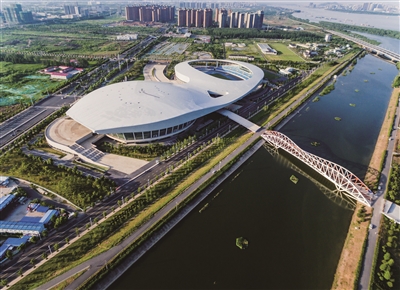 武漢體育中心體育館位于武漢市經(jīng)濟(jì)技術(shù)開(kāi)發(fā)區(qū)體育中心,是全國(guó)第六屆城市運(yùn)動(dòng)會(huì)體操比賽場(chǎng)館及全國(guó)第八屆藝術(shù)節(jié)開(kāi)幕式會(huì)場(chǎng),這座擁有13000個(gè)座位的現(xiàn)代化一流體育館總建筑面積53919平方米,總投資3.18億元。體育館地上五層,建筑物檐口高27.70m,平面為橢圓形。