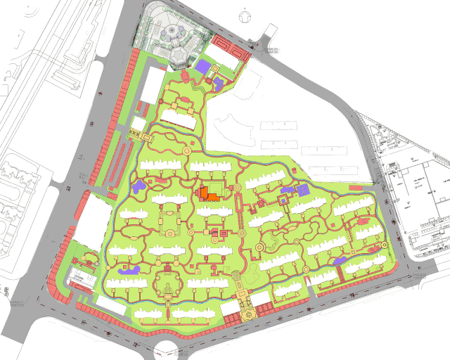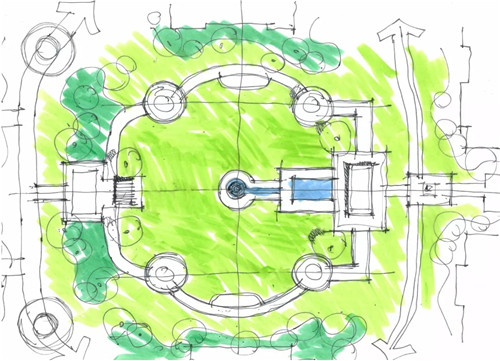 根據(jù)現(xiàn)有的建筑布局,結合景觀風格造景手法打造“開合有度,收放自如”的特色景觀空間。