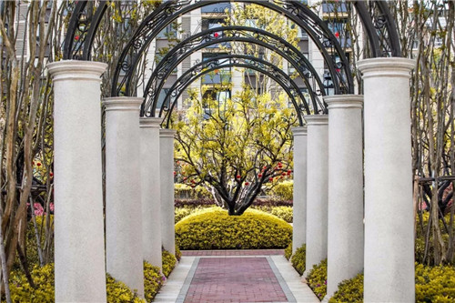 從入口處的小廣場拾級而上進入園區(qū)內(nèi)的軸線景觀,植物設計意在打造一個富有變化的景觀空間。立體園林勝景,時令植物搭配,創(chuàng)造四季常青的現(xiàn)代生活情景景觀。