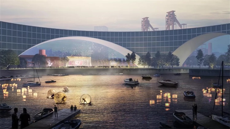 MVRDV 與天安時(shí)間藝術(shù)中心合作,在為杭州大城北核心示范區(qū)設(shè)計(jì)的總體規(guī)劃中,深入挖掘了大運(yùn)河文化內(nèi)涵,突出了大運(yùn)河的歷史脈絡(luò)和當(dāng)代價(jià)值。Maas 杭州大運(yùn)河當(dāng)做可媲美長(zhǎng)城的重要地標(biāo),敏銳地將大運(yùn)河的歷史分為多個(gè)層面,多個(gè)層面彼此相連、譬如糾墨。第一層面是那些古老的小鎮(zhèn)和老橋,第二層面是鋼鐵廠、煉油廠等等與大運(yùn)河息息相關(guān)的工業(yè),第三層則是源遠(yuǎn)流長(zhǎng)的商業(yè)——“我們希望這是一個(gè)諸多元素的混合設(shè)計(jì)。”Maas 選擇保留過去的痕跡——將杭州鋼鐵廠的工業(yè)遺存,特別是3座高爐、特色辦公樓以及傳送帶等利用起來,將商業(yè)“讓位”于綠地、文化設(shè)施和公共開放空間,讓這里轉(zhuǎn)化為集運(yùn)動(dòng)休閑、創(chuàng)意展示、游樂體驗(yàn)等于一體的文化公園。Maas 興奮地提及最初激發(fā)他靈感的事物:大運(yùn)河旁邊的房子非常小,類似于胡同,“我們仿似在營(yíng)造胡同未來的當(dāng)代性”。在 Maas 眼中,以旅游業(yè)和創(chuàng)意產(chǎn)業(yè)為發(fā)展優(yōu)勢(shì)的杭州,是一個(gè)城市內(nèi)容十分豐富的城市。Maas 也說到團(tuán)隊(duì)中有專門調(diào)研商業(yè)的其他成員甚至?xí)タ疾烀绹?guó)的高線公園如何影響地產(chǎn),并將調(diào)研的所得運(yùn)用到這個(gè)項(xiàng)目之中。
