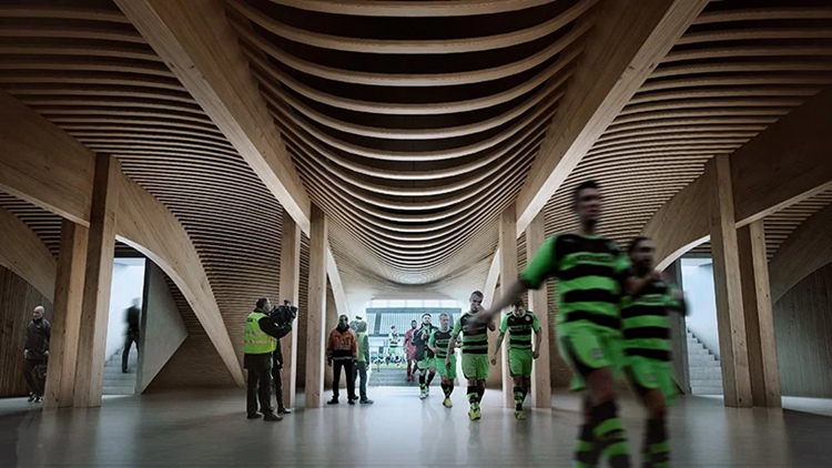 扎哈事務(wù)所設(shè)計(jì) 世界首個(gè)全木質(zhì)足球場將落戶英國