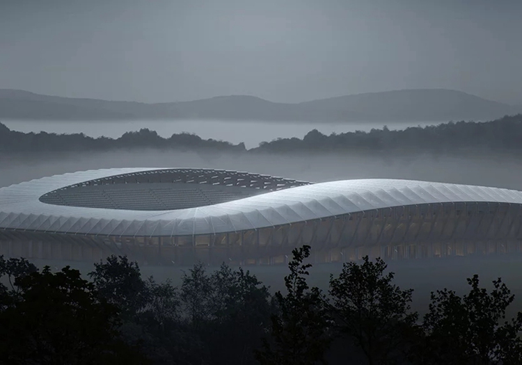 2016年,扎哈·哈迪德事務(wù)所公布了全木質(zhì)足球場的設(shè)計(jì)方案。3年后,項(xiàng)目通過了規(guī)劃審批。項(xiàng)目屬于占地100英畝,涵蓋體育、綠色科技商務(wù)園區(qū)“生態(tài)園”計(jì)劃,地點(diǎn)選在英國格洛斯特郡。該球場將成為英乙格蘭森林流浪足球隊(duì)的主體育場,還將作為承辦當(dāng)?shù)厣鐓^(qū)活動(dòng)的場地。