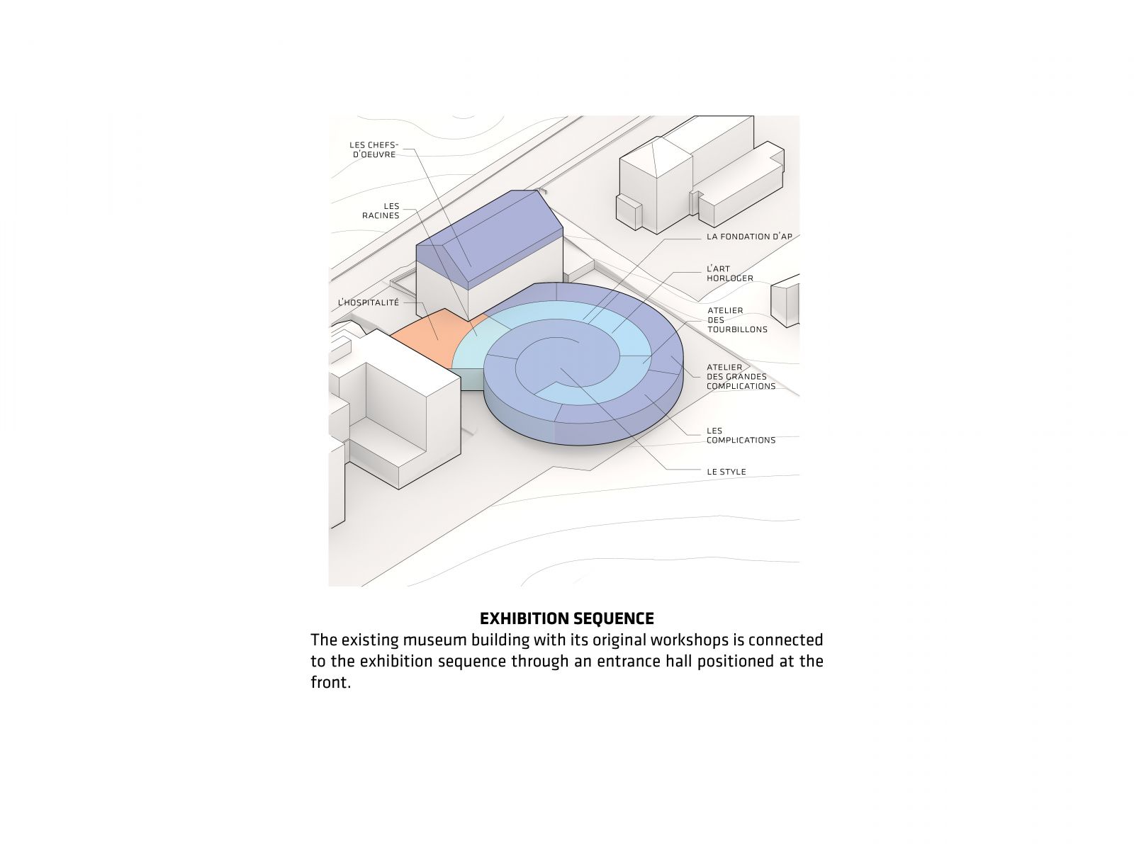 Musée Atelier Audemars Piguet is located among the historical complex of workshops and factories in Le Brassus in the heart of La Vallée de Joux. Its organization and architecture will embody the core values of Audemars Piguet. It must be characterized by the independent spirit of the family-owned company that has retained autonomy over the years, making it a game-changing innovator in a field governed by rules and traditions. It must be rooted in the heritage of watchmaking in La Vallée de Joux, which goes back centuries and is nested in the nature and culture of the place and the people of the valley. And finally, it must incorporate the inner tension that characterizes Audemars Piguet and resonates throughout the brand, the craft and the designs as captured in the motto: to break the rules you must first master them.