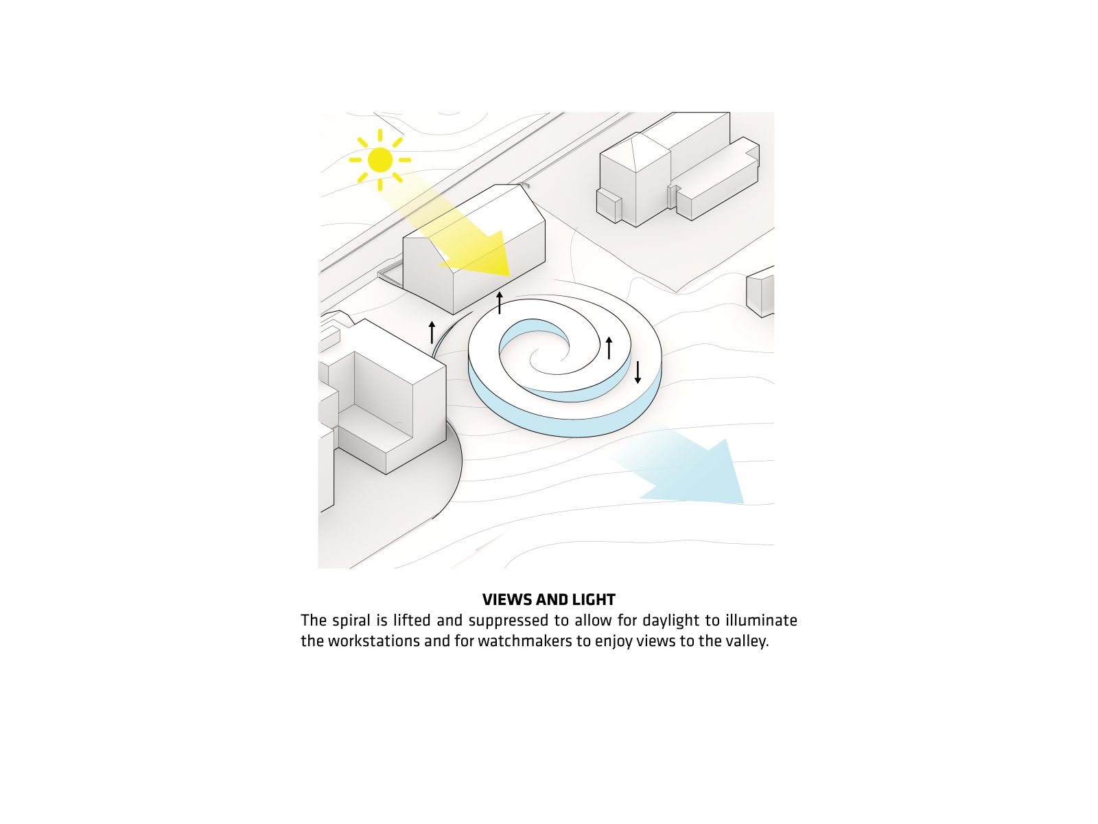 螺旋線被抬起,以使光線可以照亮場館,制表技師能夠欣賞山谷的景色。