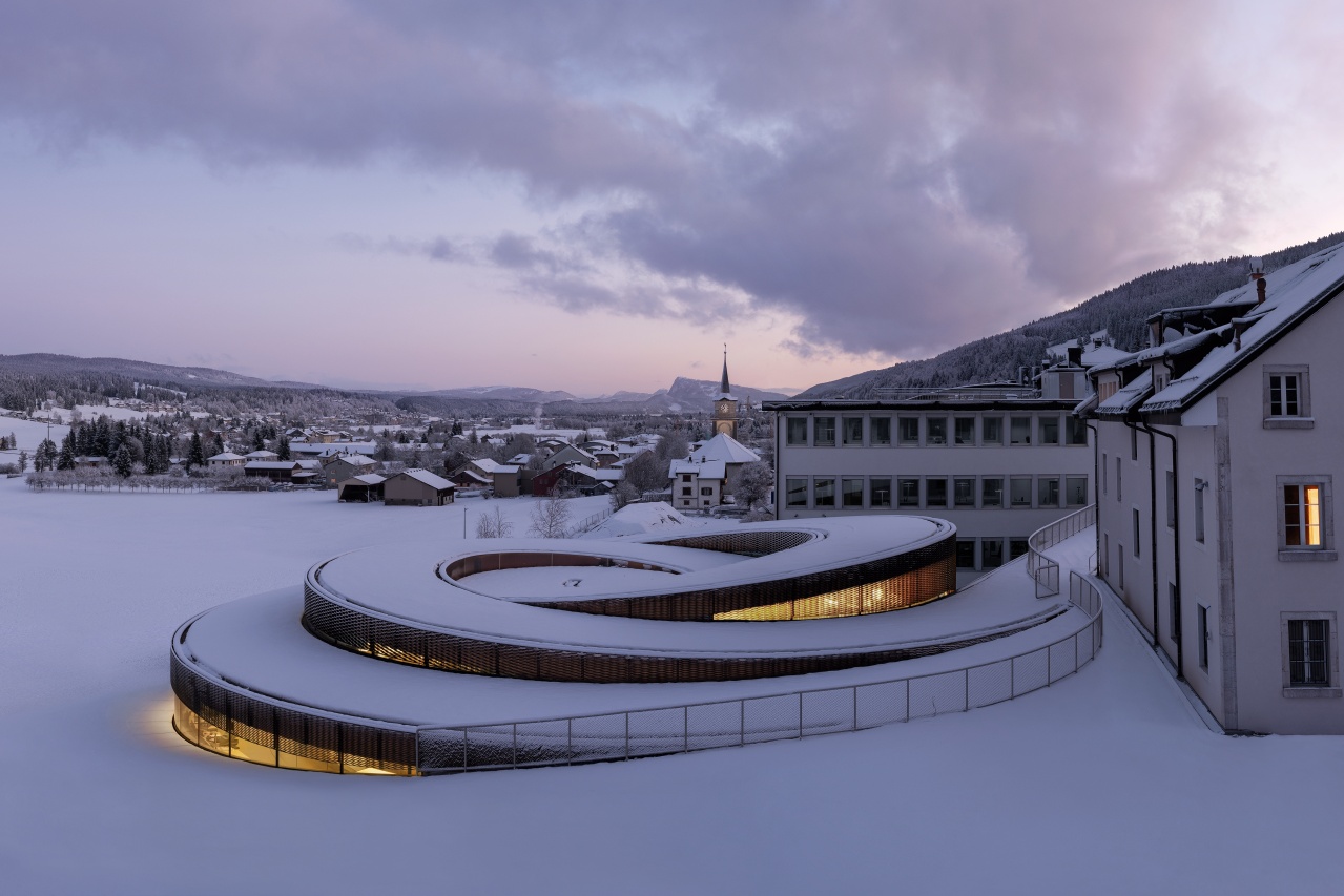 瑞士螺旋博物館MUSéE ATELIER AUDEMARS PIGUET 是Bjarke Ingels Group 建筑師事務所(BIG) 專門為瑞士奢侈表商愛彼(Audemars Piguet)量身打造的。項目坐落在名表勝地汝拉溪谷,布拉蘇絲村落的歷史建筑群中。布拉蘇絲村落的制表歷史可追溯到數百年前,制表傳統已深深地融入在山谷的自然和文化脈絡之中。博物館設計突出家族企業獨立精神,多年來一直保持自主權。項目呈現出愛彼特有的內在張力,工藝和設計的共鳴體現在整個設計過程當中:要打破規則,必須首先掌握規則。