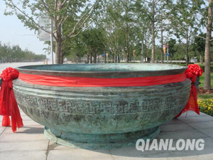 另外,兩個(gè)由安徽省政府捐贈(zèng)給北京奧運(yùn)會(huì)的禮器——銅鑒雕塑“春秋鑒”也已經(jīng)落戶(hù)在奧林匹克民族景觀大道,“春秋鑒”以銅陵市出土的青銅鑒為創(chuàng)作原型,高1.37米、直徑3.4米,雕塑身刻56組龍鳳青銅紋飾,寓意中華56個(gè)民族;圈足底部刻有江河紋,寓意江淮大地;基座采用徽州三雕的透雕手法,刻有8組安徽代表性的歷史、人文、自然景觀。整個(gè)“春秋鑒”包涵“承諾與鑒證”之意,與奧運(yùn)標(biāo)志中國(guó)印遙相呼應(yīng),寓意6600萬(wàn)江淮兒女與全國(guó)人民共同見(jiàn)證北京奧運(yùn)會(huì)的輝煌盛況。