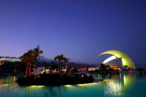 座落于海邊的坦納利佛音樂廳到了夜間散發(fā)出的光芒映落于海濱,成為熱愛海洋的西班牙人們與波浪談情說愛的另一個表征。