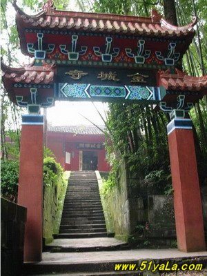 “金城山位于興隆場東南,蓬岳界間,周回百里,高瞻數邑,上有九十九峰,三十六泉,四十八洞,雄勝冠于金邑。山上夏無盛暑,秋即嚴寒。”(民國18年《新修南充縣志》載) 金城山--省級森林公園,主峰海拔824米,是天下七十二佛地之一。“森林蒼茫欲滴翠,曲徑幽幽幾度回,恢宏寺廟古風在,尋奇探險莫忘歸”。 明朝文淵閣大學士、宰相陳以勤寫的七律詩“我到金城關上門,方知岳外有山尊。高摩赤日分昏曉,雄壓諸山是子孫。劍插龍池留勝跡,步虛臺樹走長根。英雄祠此真靈異,記載紛紛何足論”刻在峽谷右壁上。 “金城日出”、“金門霧鎖”、“寶蓮晨鐘”、“天女拋紗”是金城山的四大奇觀,身臨其境可享受“金城日出彩霞絢、金門鎖霧指不見,天女拋紗天門閉,晨鐘沖破黎明天”之美景。