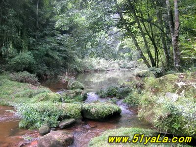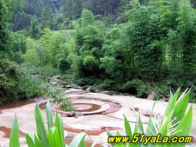 2、蓮花石 生長在天堂景區(qū)萬綠叢中的一個(gè)巖腔里,由多層蜂窩狀紅色砂石組成,寬38米,高1.4米,形如觀音菩薩的蓮花寶座,神奇美妙。崖壁上布滿天然形成的神筆巖畫,給這一景觀更添神奇。 3、砂巖子(巖洞群) 天堂景區(qū)甘溪河邊的山壁山,橫排著三層巖洞群,底層2個(gè)低矮幽深,中層5個(gè)排列稀朗,頂層8個(gè)連成一串,云遮霧繞宛若天街。各洞洞口,或懸藤垂蔓,或流泉絲絲,或桃紅李白,或桑麻青青,不是桃源,勝似桃源。著名電影導(dǎo)演凌子風(fēng)考察后說:“這是大自然的杰作”。 4、月亮巖 位于天堂景區(qū)的月亮巖,中高27米,底長163米,進(jìn)深15米,形為圓弧,巖色灰白,處在半山間,宛如一輪圓月正從碧濤之中升起,巖中建造的古樸別致的避暑山莊,恰似月中的宮殿。 5、逍遙洞(地巖) 玉蘭山中的一個(gè)巖壁上,有一個(gè)半圓形石洞。進(jìn)洞緩下數(shù)米,但是一個(gè)地下巖洞。巖洞寬大開闊,面積約1500平方米。巖洞內(nèi)地貌多樣,有石山、水潭、小湖、沙灘。一條小河流經(jīng)巖洞,不知源頭何在,流向何方。 6、桃子巖 位于自懷景區(qū)刀關(guān)溪岸。在長約10公里的懸?guī)r峭壁上,巖石千姿百態(tài),巖畫神奇怪異,是鬼斧神工創(chuàng)造的藝術(shù)長廓。因?yàn)槠渲杏幸粔K風(fēng)蝕形成的巨大蛋形如桃子,故名桃子巖。 7、乾坤圖與天堂神秘圖 自懷景區(qū)承露溝入口處,在一塊直徑3米的紅色巖石上,天然形成一幅圖紋,酷似“乾坤八卦圖”,天堂景區(qū)的黑龍?zhí)杜希粡垐D案玄奇、風(fēng)骨遒勁的“天堂神秘圖”赫然顯現(xiàn)在一塊高約5米,寬約4米的巨石上。這圖如何形成,世人眾說不一;圖示什么內(nèi)容,至今無人破譯。 8、 凹面大佛 天堂景區(qū)大漕河畔,有兩道山脊朋合處的崖壁露出一片凹凸不平的巖石,酷似一張神情莊嚴(yán)的人臉,左右兩條上下陡中間緩的山脊,恰似人坐凳時(shí)垂放在雙膝的兩只手。這一景觀,活象一尊偉岸和大佛,頭頂藍(lán)天,兩手撫膝,正襟危座在林海中央。佛寶景區(qū)奇巖異石眾多,大鹿 洞、癩子巖、唐僧石、八戒石……一巖一個(gè)神話,一洞一個(gè)天地,一石一個(gè)傳說,給人許多快活。