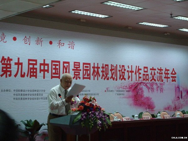 中國勘察設計協會副秘書長栗元珍、廣東省政府副秘長羅歐、廣東省建設廳副廳長劉錦紅、城建處處長洪冰、廣州市政府副秘書長潘安、廣州市市政園林局局長馬文田、副局長潘雙明等各級領導、廣東園林學會理事長黃兆儒、廣東風景園林協會常務副理事長兼秘書長周琳潔出席了開幕式。其中,栗元珍副秘書長、劉錦紅副廳長、馬文田局長、周琳潔秘書長分別代表了各級部門致辭,風景園林界泰斗中國工程院院士孟兆禎教授出席會議并作了專題學術報告。