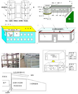 在材料的培養(yǎng)過(guò)程中,無(wú)論是誘導(dǎo)分化還是繼代培養(yǎng),材料在初始培養(yǎng)階段主要是利用培養(yǎng)基中的營(yíng)養(yǎng)物質(zhì)來(lái)分化生長(zhǎng),只進(jìn)行少量的光合作用,但是,隨著組培苗的長(zhǎng)高對(duì)光照的需求也增加。常規(guī)培養(yǎng)要求日光燈輔助光強(qiáng)12—14小時(shí),光強(qiáng)為800—3000lux(譚文澄,1991),這樣就需耗費(fèi)大量的電能( 9.0元/1根燈管.月),這是一個(gè)造成成本過(guò)高的主要原因之一,而且在恒定的溫度、光強(qiáng)、無(wú)菌的條件下所培養(yǎng)組培苗對(duì)外界環(huán)境的適應(yīng)力差。如果充分利用自然條件來(lái)設(shè)計(jì)培養(yǎng)室,將常規(guī)的恒溫輔助光強(qiáng)改為變動(dòng)溫度及自然光照培養(yǎng),溫度可通過(guò)空調(diào)來(lái)調(diào)溫,外加輔助如冬季加暖氣,夏季淋水亦可調(diào)溫,使溫度保持在18—28℃左右,光強(qiáng)可通過(guò)花玻璃,加遮陰網(wǎng)來(lái)調(diào)節(jié),使光強(qiáng)在1000-3000lx內(nèi)變化。1、自然光照培養(yǎng)室的建設(shè) 為了充分采光進(jìn)行有效組織培養(yǎng),對(duì)于新建組培室,濟(jì)南農(nóng)業(yè)開發(fā)區(qū)采用了東南西三面采光方便的望遠(yuǎn)鏡式雙園形設(shè)計(jì),內(nèi)徑6M,長(zhǎng)31M、高度7M。外層建成雙層花玻璃封閉式結(jié)構(gòu),即能保證有充足的進(jìn)光量,又能避免直射陽(yáng)光的不均勻照射。內(nèi)置培養(yǎng)架外圈排二列計(jì)18個(gè),內(nèi)層為一排計(jì)7個(gè),基本達(dá)到每個(gè)培養(yǎng)架盡量爭(zhēng)取光源的原則。屋內(nèi)上頂按裝日光燈以補(bǔ)充照明,所有物體均涂以白色材料,反光照明。其建筑見圖。其培養(yǎng)效果很好,由此培養(yǎng)的植物體分化正常,生長(zhǎng)健壯。 后三個(gè)組培室的瓶苗培養(yǎng)室均采用平房式圓形建筑結(jié)構(gòu),以便在培養(yǎng)過(guò)程中,全天都可以采用自然光照,并且房子屋頂開大天窗,解決屋的內(nèi)部和北部光太弱的問(wèn)題。 2、簡(jiǎn)易組培室的建設(shè)
