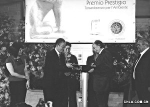 2007年5月5日,胡潔在意大利羅馬接受國際風(fēng)景園林獎(jiǎng)一等獎(jiǎng)獎(jiǎng)牌。(清華城市規(guī)劃設(shè)計(jì)研究院提供)