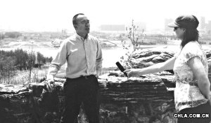 2007年5月13日,胡潔在北京奧林匹克森林公園接受由國際風(fēng)景園林師聯(lián)合會(huì)特邀新西蘭電視記者金·特佳特的專題采訪。