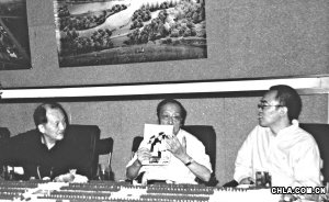 國家夏、商、周斷代工程首席科學(xué)家、專家組組長,中國先秦史學(xué)會(huì)理事長李學(xué)勤教授(中)參加了2006年奧運(yùn)公園景觀設(shè)計(jì)的研討交流會(huì)并對(duì)規(guī)劃方案中有關(guān)歷史人文內(nèi)涵方面提出了自己獨(dú)特的建議,(左)為北京大學(xué)歷史系吳榮曾教授,(右)為胡潔。
