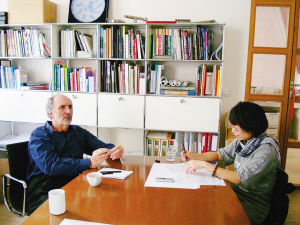 保羅·安德魯在他的巴黎工作室接受本報特約撰稿人劉英采訪