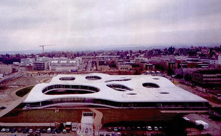 這是一座低矮的圓形建筑,像一個飛碟懸浮在市中心綠化地帶。360度開放的透明玻璃幕墻,讓室外風景自然融入,四周植物和室內陳列品渾然一體,令觀者忘記身處室內。建筑內部以一個偏心圓為中心,周圍游移著19個展廳,看似隨意的立方體箱子,實際有著嚴格規范。由于建筑的采光和透明設計,室內被柔和的自然光所包圍,波光樹影全然溶解到這座白色建筑中,遠遠看去,如同一個純凈圓潤的漂浮細胞。“美術館并不只有展覽功能,更多時候,這是人接觸城市的平臺,如何溫和地與城市融為一體、用一種親切感吸引公眾,是一個重要議題,所以我使用透明以及圓形為元素。”