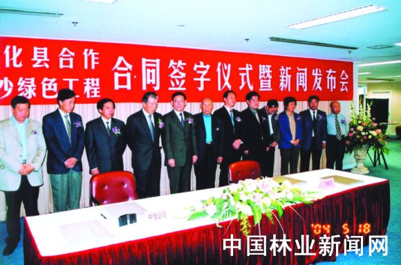 中信公司黃羊?yàn)┤f畝治沙綠化合同簽字儀式。