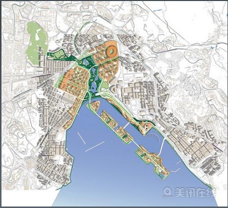 機場跑道被遷到了周邊的一個群島上,離渡口、電車站與散步道很近。新增設的水道也增加了濱水地區的開放空間,提高了水質,也創造了一處新的水上休閑場所,并且還美化了中心港口的風景。新建的濱水公園有一條狹長的小路通向社區,更促進了周邊地區持續發展。