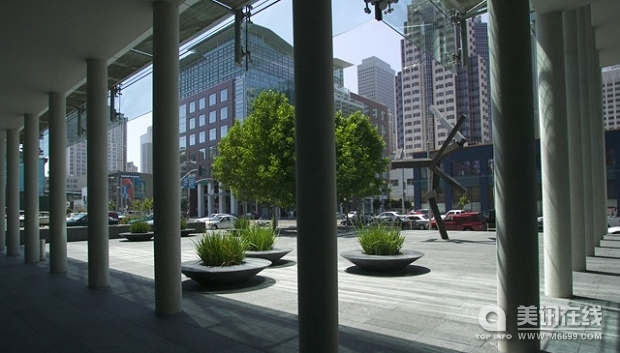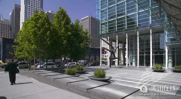 舊金山市同時也要求該項目包含一些公共藝術,SWA并沒有采用傳統方法——在廣場上豎立一座藝術品,相反,設計團隊采用了一種新的方案,而這種方案更加具有多樣性。