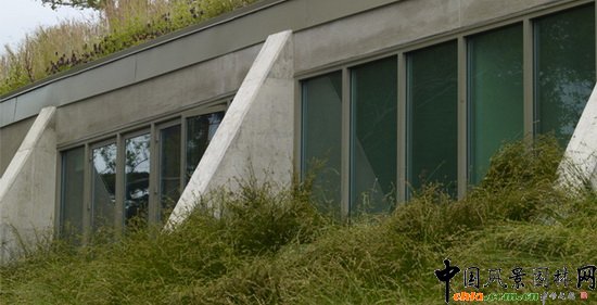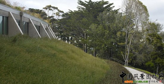 崖徑上種植的鄉(xiāng)土本掩蓋了圖書館東邊的高度