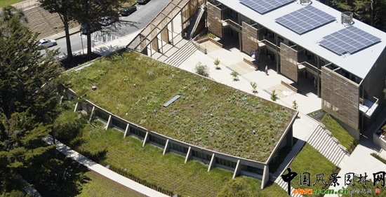 圖書館和學(xué)生中心的屋頂綠化為鄉(xiāng)土植物提供了1萬平方英尺的生境