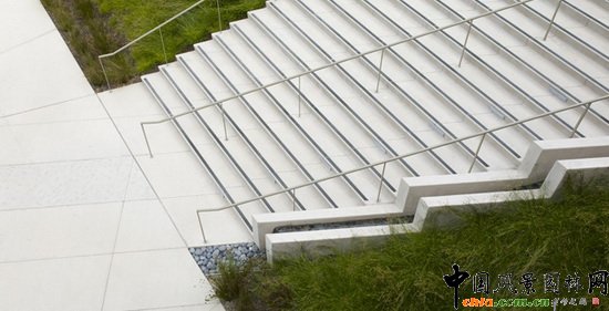 新的廣場和設(shè)計充分考了暴雨水。可見的雨水溝使水流作為穿過廣場的重要軸線而具有可觀性,還能體現(xiàn)環(huán)境的季節(jié)性轉(zhuǎn)移。教學(xué)樓屋頂上的雨水流到較低階梯上,慢慢的滲透、散開。綠化了的屋頂能顯著減少水流量。