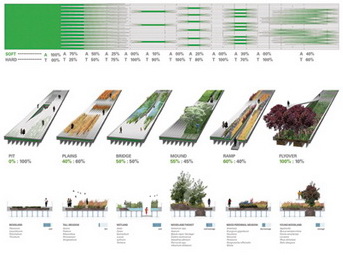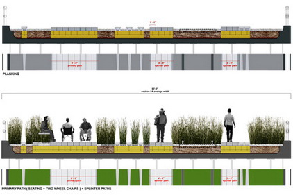 發明了一個新的鋪路系統使人可以沿著蜿蜒的高線運動,同時保持最低的道路寬度。植物種類很容易重新配置,使硬質的表面有高度的一致性和空間的多樣性。
