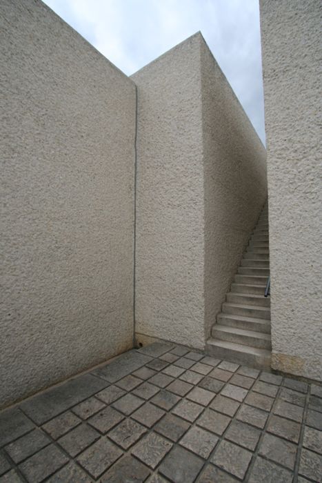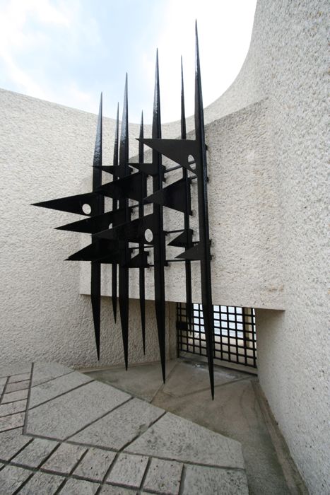 建筑由法國現代建筑師、作家、教師以及城市規劃師喬治·亨利·Pingusson設計。Pingusson設計了一個空間系列,將周圍的世俗環境向紀念性空間轉換。他采用狹長的下沉空間來傳達一種幽閉恐懼的感受。