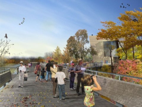 密西西比河周邊將要恢復的天然濕地,以吸引野生動物到此處棲息