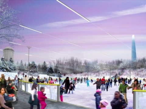 大拱門南部的冬季休閑活動——溜冰。