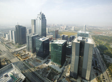 馬清運(yùn)設(shè)計(jì)的水街商務(wù)休閑中心南北貫穿整個(gè)1號地塊,河道寬32米,河道兩岸共建有8幢商業(yè)樓,商務(wù)酒店、精品購物、中西式餐飲、娛樂中心、高級會(huì)所等一應(yīng)俱全。“這是有意的安排,也是商務(wù)區(qū)一貫的規(guī)劃理念的體現(xiàn),”一位設(shè)計(jì)師說,“納入這些配套設(shè)施,就是希望能讓一個(gè)完整的商務(wù)流程在商務(wù)區(qū)內(nèi)進(jìn)行,從而避免白天車水馬龍、晚上門可羅雀的景象。”