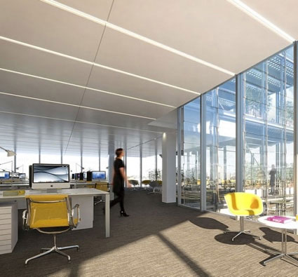 每層辦公樓層都有兩個空中花園,用來改善室內空氣質量,促進工作區的空氣流通。