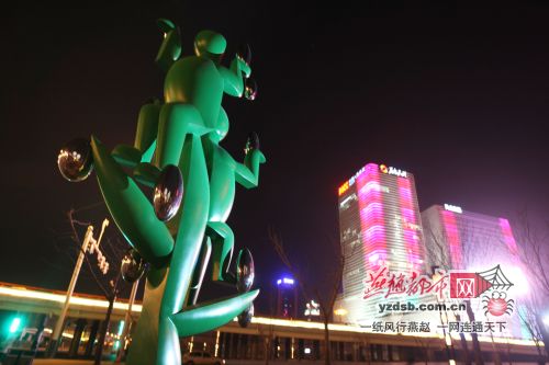 《時空跨越》地點:裕華路與東二環交叉口。采用抒情詩般的浪漫主義表現手法,勾勒出一幅戰國時期古中山國人與現代人手拉手,踏著皎潔的月光,遨游太空,探求未知宇宙的美好畫卷。
