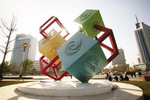 《虛實相生》地點:裕華路與建華大街交叉口。寓意結構、排序、實體、虛空,相生相克,互惠互中,平心靜氣,萬物興隆。
