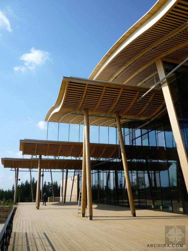 2010年5月在法國Harcholins叢林(Sarrebourg附近)建造了法國Parcs度假村,該項目無論是結構構件還是外墻覆蓋層都以材為主架構,建筑的下半部分被云杉和落包圍,好像消失在植被的邊緣。