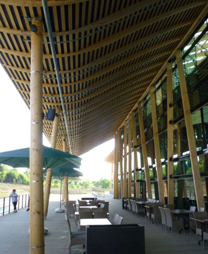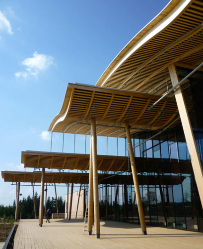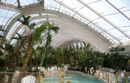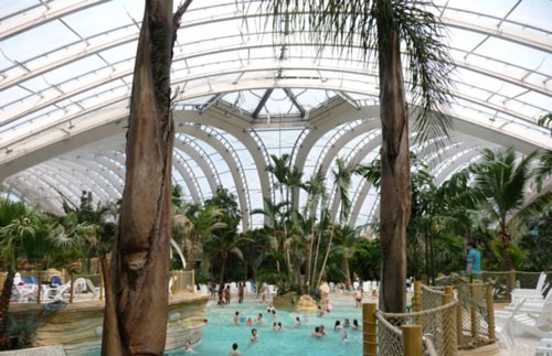 2010年5月,第四座法國中央公園度假村在哈克林斯森林里建成。在這個項目里,木材的運用是一個很明顯的特色,不管是建筑結構還是立面覆面。 水上樂園包括水、土地、空氣和光線四大元素,水上樂園有5000平米的水上游戲場所和海濱。項目的挑戰在于如何把大型的上層建筑插建在景觀之中,而且能適合樹木的生長。整個項目是一個三葉草形的規劃,項目有三個穹頂,跨度為35米,高13~16米。這些上層建筑建造在實體的礦石地基上,礦石地基高5~7米,并把游泳池包圍起來。 溫室是該度假村第一個也是最重要的一個冬景花園。它的設計理念和該地的歷史有關,溫室內外都給人帶來熱帶的感覺。溫室外面覆蓋有非常輕盈的木結構。 項目從各方面進行節能,600平米的鍋爐房能提供90%的建筑所需能量,包括取暖和熱水。項目使用自然通風,這樣能節省大量電能。晚上,戶外泳池的水被儲存起來,這樣第二天就不需要再加熱泳池,也節省了不少能量。最后,“反滲透”設計能重新使用60%的過濾水。 ![]() ![]() ![]() ![]() ![]() ![]() ![]() ![]()