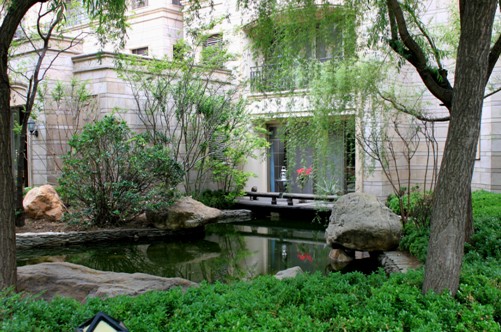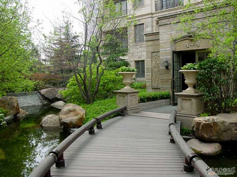 中國風景園林網訊 5月的北京,猶如4月的江南,溫潤適宜,處處花紅柳綠,16日,中國風景園林網組織了本年度第二次會員日活動,北京林業大學園林學院研究生會也報名參加了此次活動,本期活動為北京星河灣園林景觀現場觀摩交流。星河灣高檔住宅區位于朝陽區,一期設計方是貝爾高林公司,施工方是廣東棕櫚公司,棕櫚公司也做了深化設計,后兩期均由棕櫚公司負責設計并施工。 參加活動之前就對北京星河灣極富南方特色的園林景觀有所耳聞,而且據說活動中還有棕櫚園林北京分公司的張總負責講解,就更是期待。活動當天,天氣雖不甚晴朗,但卻也濕潤宜人,適合拍照。在棕櫚園林張總和星河灣丁經理的帶領下,我們走進了星河灣,開始慢慢揭開星河灣的神秘面紗,近距離的欣賞她! 在張總和丁經理的介紹與講解中,我們了解到星河灣的小區景觀從設計到施工以及后期養護都是花了很大一番功夫的。尤其是在植物景觀方面,從前期的種植設計到苗木選擇、苗木栽植、地被花卉布置以及后期的養護管理工作等,都細致入微,幾經調整改動,直到達到極佳的效果,當然,每平米的景觀造價也是相當高的。整個小區內,植物與建筑、水體、景石、地形、小品等造園要素完美結合,做到處處有景,步移景異!下面,分幾個方面來探討一下星河灣的植物景觀。 小橋流水人家……植物與建筑水體的結合 進入小區,第一印象就是植物密度好大,幾乎小區內的每一個角落都被精心設計的植物所裝飾,這在北方園林中是比較罕見的。在建筑的入口以及窗前,植物裝點建筑,建筑為植物提供背景,兩者互為界面,相互圍合;喬木、灌木結合綠籬、地被、草坪,層次豐富,使每一處都形成一幅完美畫面。同時,小區內水體環繞小區布置,建筑入口與小區之間通過木棧橋相連,宛然一幅幅小橋流水人家的親切場景。