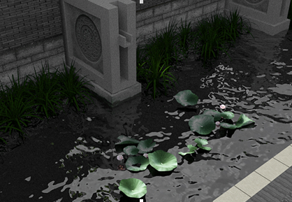 別墅區的景墻,一為墻上的裝飾,增強建筑的氣場;二是作為私家大院的遮擋,使氣流繞壁而行、聚氣不散;三又表明了院落的內外有別,營造一種和諧、安謐、幽靜的環境。宅門入口兩側,各配一塊形似圓鼓的石制構件,實為東方“非貴即富”的門第符號――抱鼓石,以彰顯屋主身份地位的等級差別。 豎鋪勾勒,一色天青的煙雨之地