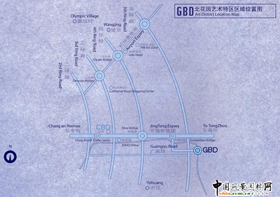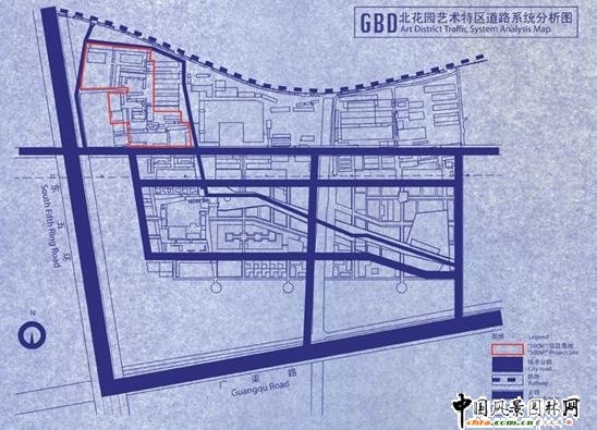 二 基地分析 1. 區位分析 GBD北花園藝術特區位于北京朝陽區高碑店地區。處在東長安街以南和東五環以東,通惠河南岸,距長安街900米,CBD六公里。 北側是京通快速路,和地鐵八通線;南側有京沈高速路。交通條件極為便利。 ![]() GBD藝術區區域位置圖 藝術區周邊的單位有:中國傳媒大學,中國紫檀博物館,高碑店古董家具區,興隆公園,假日花園和高爾夫球俱樂部等。 ![]() 藝術區與城市中心的關系圖 2. 地塊現狀分析 GBD北花園藝術區所處的高碑店地區是一個發展迅速的古韻休閑區,距離中央商務區(CBD)僅十分鐘車程。GBD項目地塊林木環繞又有運河穿過,卻被高速公路環繞如同圍墻社區。業主希望此地成為一個開放的可進入的地區,在尊重原有自然和建筑形態的基礎上充分整合資源來創造一個融納藝術區情調、提供時尚消費、休閑居住空間的持續性園林區域。從而為城市和市民提供一個生活休閑的空間與方式。 ![]() 用地范圍及現狀圖 3. 道路系統分析 ![]() 4. 藝術區功能分區 ![]()