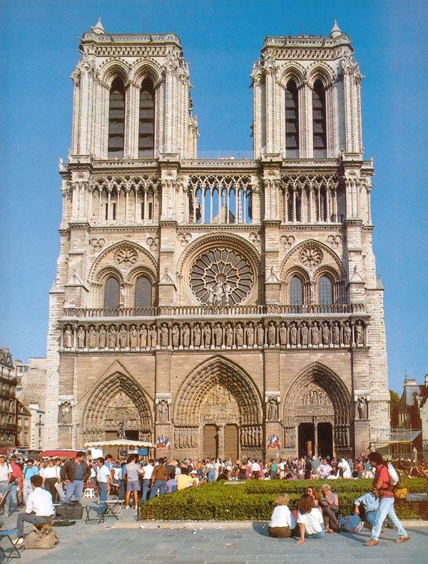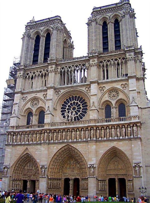 哥特式建筑是11世紀下半葉起源于法國,13~15世紀流行于歐洲的一種建筑風格。主要見于天主教堂,也影響到世俗建筑。哥特式建筑以其高超的技術和藝術成就,在建筑史上占有重要地位。 哥特式教堂的結構體系由石頭的骨架券和飛扶壁組成。其基本單元是在一個正方形或矩形平面四角的柱子上做雙圓心骨架尖券,四邊和對角線上各一道,屋面石板架在券上,形成拱頂。采用這種方式,可以在不同跨度上作出矢高相同的券,拱頂重量輕,交線分明,減少了券腳的推力,簡化了施工。 飛扶壁由側廳外面的柱墩發券,平衡中廳拱腳的側推力。為了增加穩定性,常在柱墩上砌尖塔。由于采用了尖券、尖拱和飛扶壁,哥特式教堂的內部空間高曠、單純、統一。裝飾細部如華蓋、壁龕等也都用尖券作主題,建筑風格與結構手法形成一個有機的整體。 歐洲各國的經典哥特式建筑 11世紀下半葉,哥特式建筑首先在法國興起。當時法國一些教堂已經出現肋架拱頂和飛扶壁的雛型。一般認為第一座真正的哥特式教堂是巴黎郊區的圣丹尼教堂。這座教堂四尖券巧妙地解決了各拱間的肋架拱頂結構問題,有大面積的彩色玻璃窗,為以后許多教堂所效法。 法國哥特式教堂平面雖然是拉丁十字形,但橫翼突出很少。西面是正門入口,東頭環殿內有環廊,許多小禮拜室成放射狀排列。教堂內部特別是中廳高聳,有大片彩色玻璃宙。其外觀上的顯著特點是有許多大大小小的尖塔和尖頂,西邊高大的鐘樓上有的也砌尖頂。平面十字交叉處的屋頂上有一座很高的尖塔,扶壁和墻垛上也都有玲瓏的尖頂,窗戶細高,整個教堂向上的動勢很強,雕刻極其豐富。 西立面是建筑的重點,典型構圖是:兩邊一對高高的鐘樓,下面由橫向券廊水平聯系,三座大門由層層后退的尖券組成透視門,券面滿布雕像。正門上面有一個大圓宙,稱為玫瑰窗,雕刻精巧華麗。法國早期哥特式教堂的代表作是巴黎圣母院。 巴黎圣母院始建1163年,前后歷時四百年才完工,是哥德式教堂的代表,始建于1163年,1345年建成。由三座殿堂組成,也為哥特式建筑。其中一大廳長130米,寬47米,高35米,一對塔樓高69米。其內精雕細鑿,頗有鬼斧神工之能,尤其是正門三個大拱門上的浮雕,共有千余人物,非常細致。巴黎圣母院內部裝璜,嚴謹肅穆,但以彩色玻璃窗的設計最吸引人,其中有長有圓有長方,但以其中一個圓形為最,它的直徑有九公尺,俗稱“玫瑰玻璃窗”。 ![]() ![]() ![]() ![]() ![]() ![]() ![]()