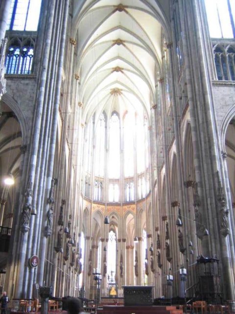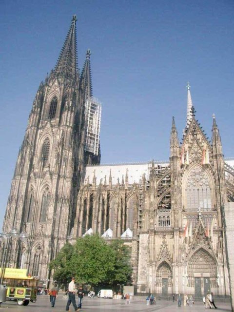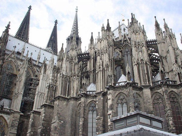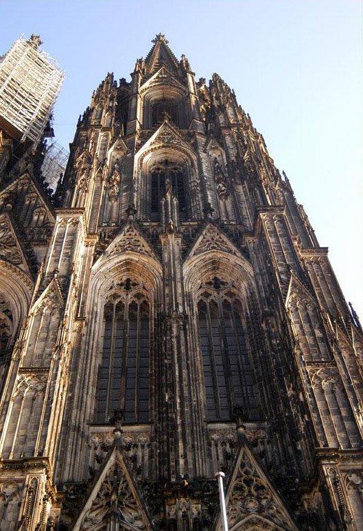 素有歐洲最高尖塔之稱的科隆大教堂,建在萊茵河畔,歷時600余年才完成。科隆大教堂以輕盈、雅致著稱于世,成為科隆城的象征,也是世界最高的教堂之一。它是當時德國人興建的一座宏偉的紀念性建筑。后來成為德國宗教、民族和藝術統一的象征。 科隆大教堂是最完美的哥特式大教堂。它始建于1248年左右,高157.38米,東西長約145米,南北寬約86米,建筑面積約6000平方米。整個建筑全部由磨光的石塊砌成?坡〈蠼烫玫慕ㄔ烨昂笳掷m了632年,是歐洲建筑史上建造時間最漫長的建筑物之一,它還具有早期基督教時代的樸素風格。 教堂中央是兩座與門墻連砌在一起的雙尖塔,高16l米,是全歐洲最高的尖塔,四周林立著無數座的小尖塔與雙尖塔相呼應。教堂內有10座禮拜堂,中央大禮拜堂穹頂高43米,中廳部跨度為15.5米,是目前尚存的最高的中廳。教堂的鐘樓上有重2.4噸的圣彼得鐘,被譽為"歐洲中世紀建筑藝術的精粹"。教堂四壁上方有總數達1萬多平方米的窗戶,全部裝上描繪有《圣經》人物的各種顏色的玻璃,色彩十分絢麗。教堂內還有一座11世紀德國奧托王朝時期的木雕《十字架上的基督》,成為哥特藝術的先導,對后世的雕刻產生了重大的影響。 ![]() ![]() ![]() ![]() ![]() ![]() 德國教堂很早就形成自己的形制和特點,它的中廳和側廳高度相同,既無高側窗,也無飛扶壁,完全靠側廳外墻瘦高的窗戶采光。拱頂上面再加一層整體的陡坡屋面,內部是一個多柱大廳。馬爾堡的圣伊麗莎白教堂西邊有兩座高塔,外觀比較素雅,是這種教堂的代表。