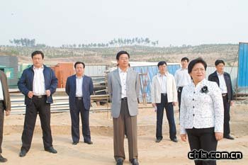 文登市委書記王亮(左三)、市長(zhǎng)張競(jìng)(前右一)、 副市長(zhǎng)張海軍(左一)現(xiàn)場(chǎng)調(diào)研城市建設(shè)
