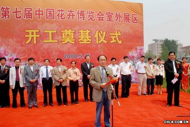 第七屆中國花卉博覽會室外展區初定名為“中國青州花卉博覽園”,由浙江森禾種業股份有限公司規劃設計和建設,總投資1.4億元,建成永久性文化公園。在奠基儀式上,浙江森禾種業股份有限公司總裁鄭勇平介紹了項目情況,青州市委副書記、市長孫忠禮致辭。