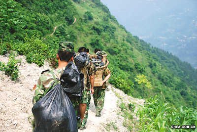 四川省平武縣平通鎮(zhèn)椒子山村位于海拔1800米的大山深處。由于大地震,通往山外的道路全部中斷,村民種植的大白菜運(yùn)不出去,鄉(xiāng)親們十分著急。濟(jì)南軍區(qū)某裝甲團(tuán)聞?dòng)嵑螅⒓唇M織官兵,沿著采藥人走的山路,用肩膀?yàn)槔相l(xiāng)搶運(yùn)蔬菜。到目前,他們共為椒子山村轉(zhuǎn)運(yùn)蔬菜5萬(wàn)余斤。