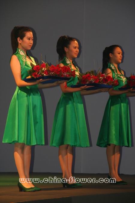 奧運頒獎手捧花昨日在“北京2008年奧運會頒獎禮儀服飾及主要頒獎元素發布會”上首次亮相。此次名為“紅紅火火”的奧運手捧花以月季和火龍珠、假龍頭、書帶、玉簪和芒葉等為主花材。“中國紅”為主基調,象征中華民族自強不息,團結一心的民族精神和不斷追求友誼、團結、公平競爭的奧林匹克運動精神。 下面組圖為發布會現場禮儀小姐手捧奧運頒獎手捧花。