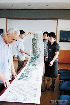 北宋的清明上河圖,成就了美術史上的佳話。如今石景山區八角街道73歲的徐克杰老人繪制的《石景山景觀攬勝圖》,把石景山的美景融匯到了10米長卷上,以迎接奧運盛會,展示石景山的巨大變化。