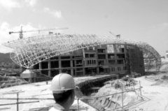 記者在施工現場看到,整個網架通體白色,像一張巨網一樣覆蓋住了游泳跳水中心,今后還將在網架上面覆蓋面板,使得整個體育中心出現一個貝殼狀的大屋頂。在游泳跳水中心內部,游泳池和跳水池都已成型,今后的建設重點將是裝修工程,它們都是按照國際標準進行建設,可以承接國際大賽,彌補了我市在高標準游泳跳水場館建設方面的空白。