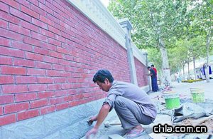 記者隨后與市建委安全監督站取得聯系。該站有關負責人說,不久前,鄭州市政府下發了相關文件,要求對市內一些主干道的沿街圍墻外立面進行專項整治,并出臺了相關標準。根據這一要求,他們開始對市內沿街工地的圍墻進行改造。